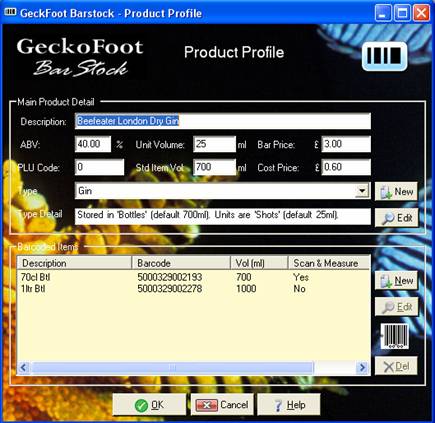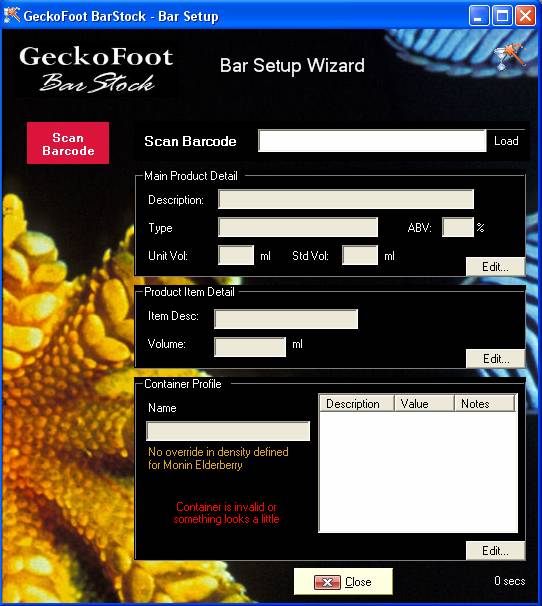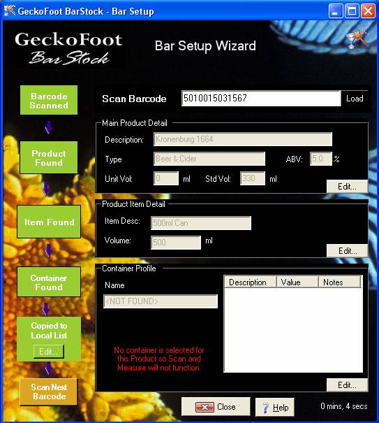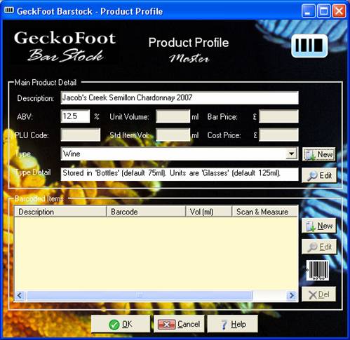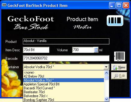 Select an existing container or click New to create a new container profile. See the Container Profile section for more detail or send new products to GeckoFoot for us to do this process for you, or talk to us about configuring the software for your bar or chain.