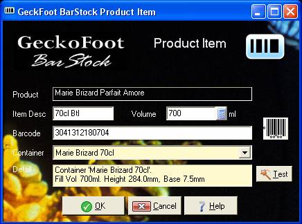 Complete the Item Description (e.g. 75cl Btl) and Volume (e.g. 750) and click OK.