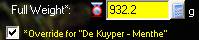 | "Override for xyz" | Click this check box and enter a new full weight if the container is shared between different products which use the same container and you wish to correct the full weight for this product only to handle different densities: