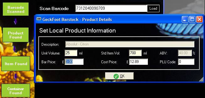 When a product is successfully found from the master list you can enter local product details.