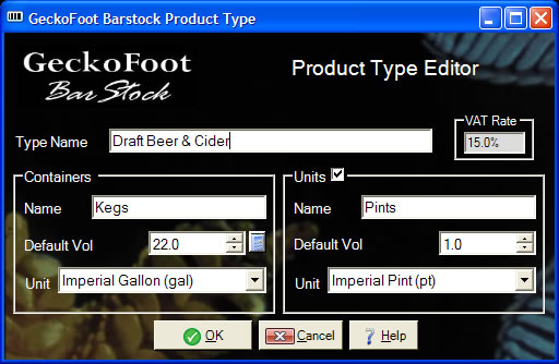 | Unit Volume | default | The size of a unit if it has one. The default is taken from the Product Type - edit this to change the default for this type of product. Left zero indicates that the item is sold in the same containers it is bought in (e.g. bottled beer). |