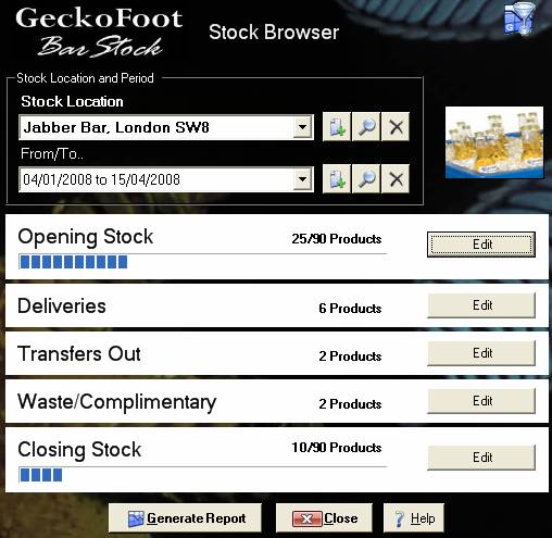 period there is Opening Stock, Deliveries, Transfers Out, Waste/Complimenatry