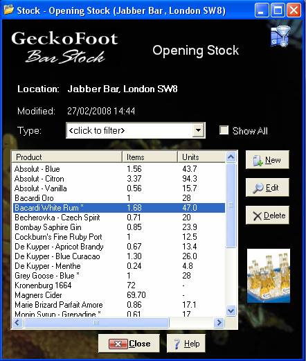Stock you would normally have readings for most products used by the business –