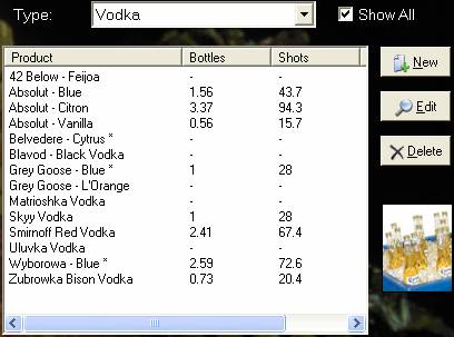 number of standard Containers and Measures (e.g. Bottles and Shots) is shown at