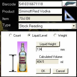 Type in the Liquid Level text box and the volume will be updated as you type. Height is measured from the base of the bottle or from the tabletop.