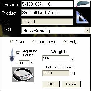 for Pourer is checked and the pourer weight is correct.