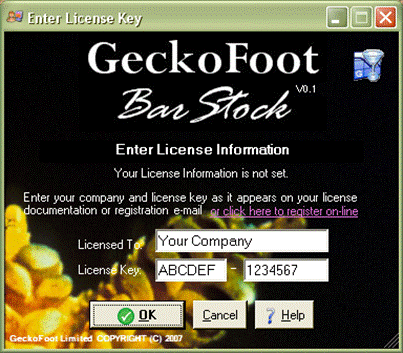 You must enter your registered name and your licence key when you first run BarStock, during installation or if upgrading or extending your system: