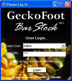 Starting the application normally shows the Logon window. Select the user from the drop down list and type in the PIN number.