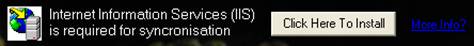 When installing you may need to insert your Windows Installation CD for the installation to find the files it needs. You should check your firewall does not prevent access to IIS and refer to the Troubleshooting section for help if synchronisation is not working.