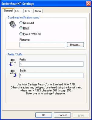 For the Socket CHS 7 these settings are found in Control Panel by double-clicking the SocketScanXP Settings lcon: