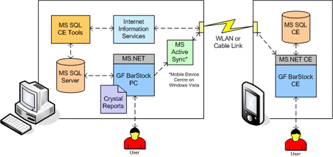 It is a multi-platform Windows based system which runs both on desktop PCs or laptops and Windows Mobile or Windows CE devices - see Supported Operating Systems. Data is synchronised between computers over a network and various barcode reading peripherals or devices can be integrated with the system.